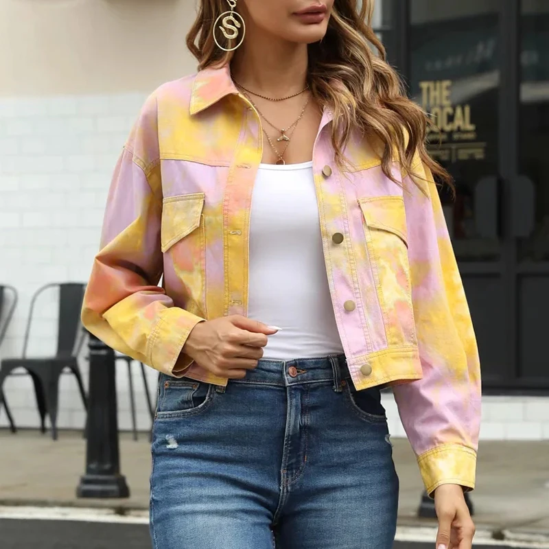 Foridol Tie Dye Denim Jackets Coat Women Retro Autumn Winter Ombre Cropped Jacket Streetstyle Short Jacket 2021 Aliexpress